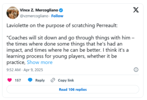 “Firing offense from Laviolette and Drury,” one X user posted. “Signing Perreault without the intention to play him? Disgraceful. Incompetent beyond belief.”