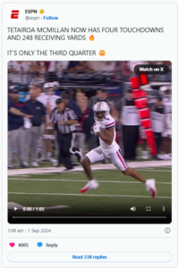 NFL.com’s Lance Zierlein described McMillan as a “possession receiver with the size and ball skills to create big wins deep.” He noted that McMillan has strong instincts, can adjust routes effectively, and helps quarterbacks by working back to the ball. However, Zierlein also pointed out concerns about his route-running consistency and physicality.