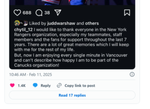 “I want to express my gratitude to everyone in the New York Rangers organization, especially my teammates, staff, and fans, for their support over the past seven years,” Chytil wrote. “I have so many great memories that I will cherish forever. But now, I’m loving every moment in Vancouver and can’t put into words how excited I am to be part of the Canucks organization!”